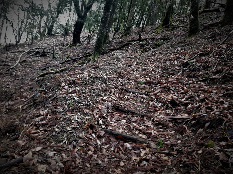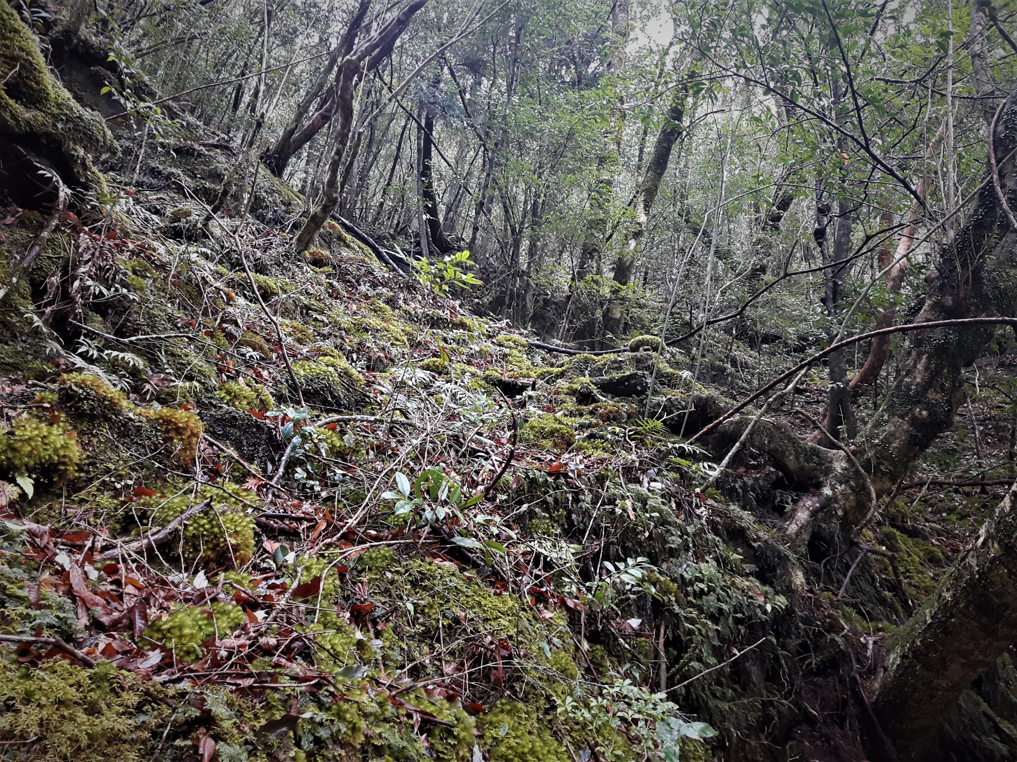 先ほどまで小雨が降り続いていたため土が湿っています。いつ大きな岩石が