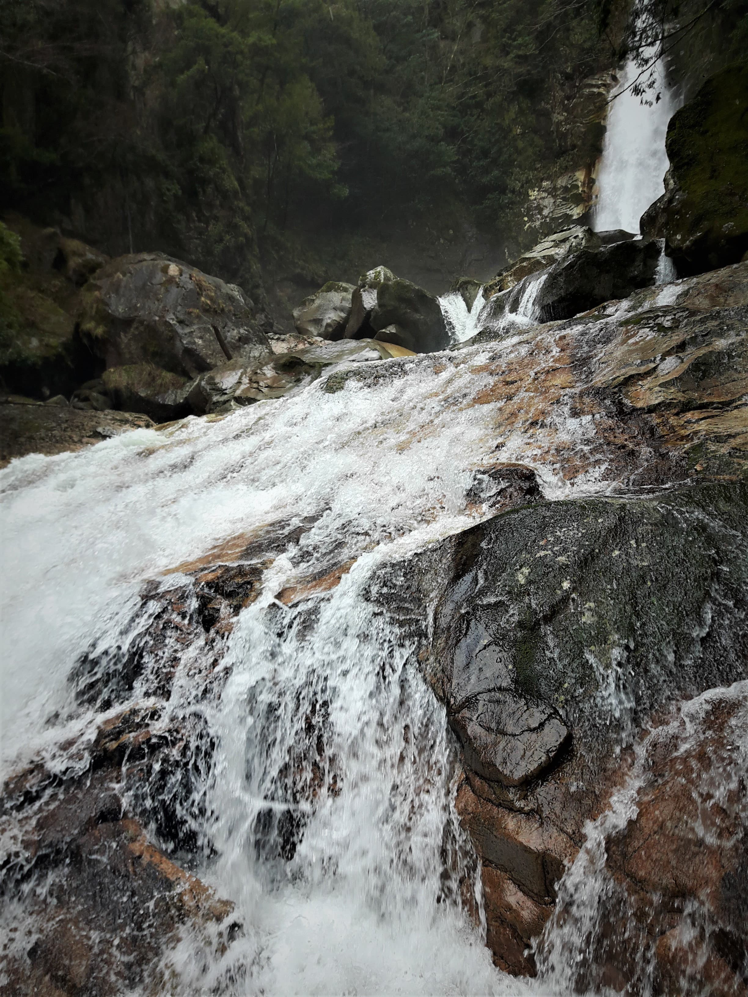 名も無き小さな滝が至る所に。立ち止まっては、一息ついて…
