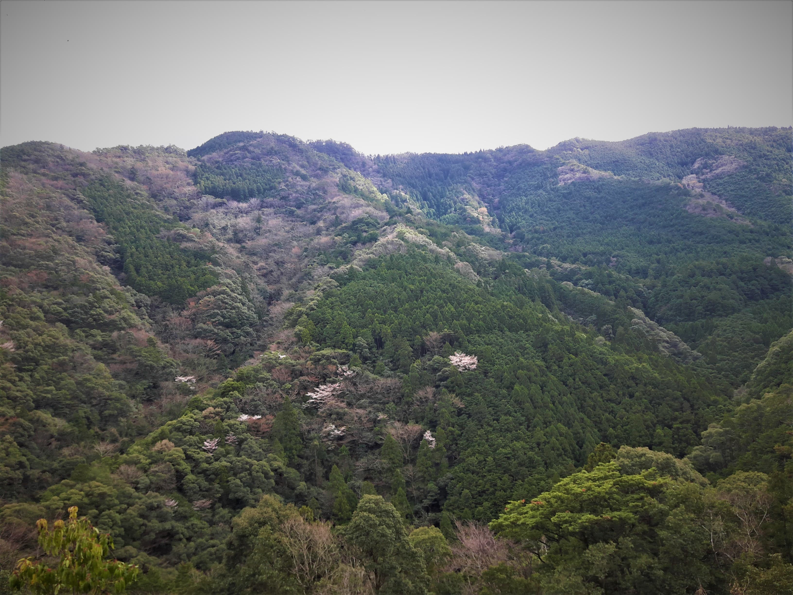 奈良盆地の気候はまだ肌寒く、山ではほとんどの桜の木が裸の状態。