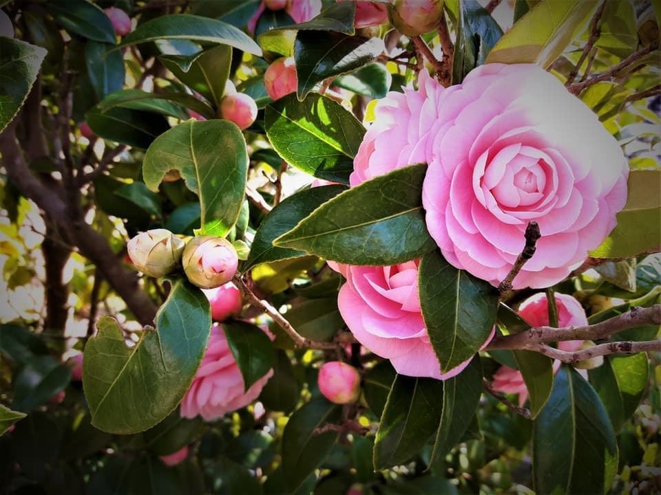 深い緑がピンクをさらに引き立ててくれます。