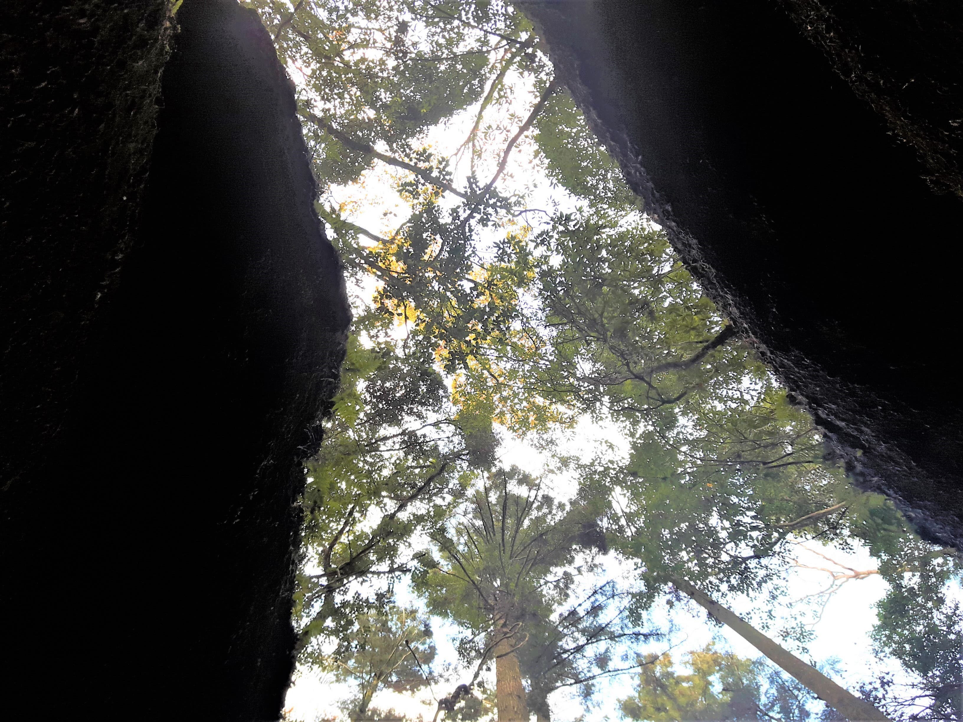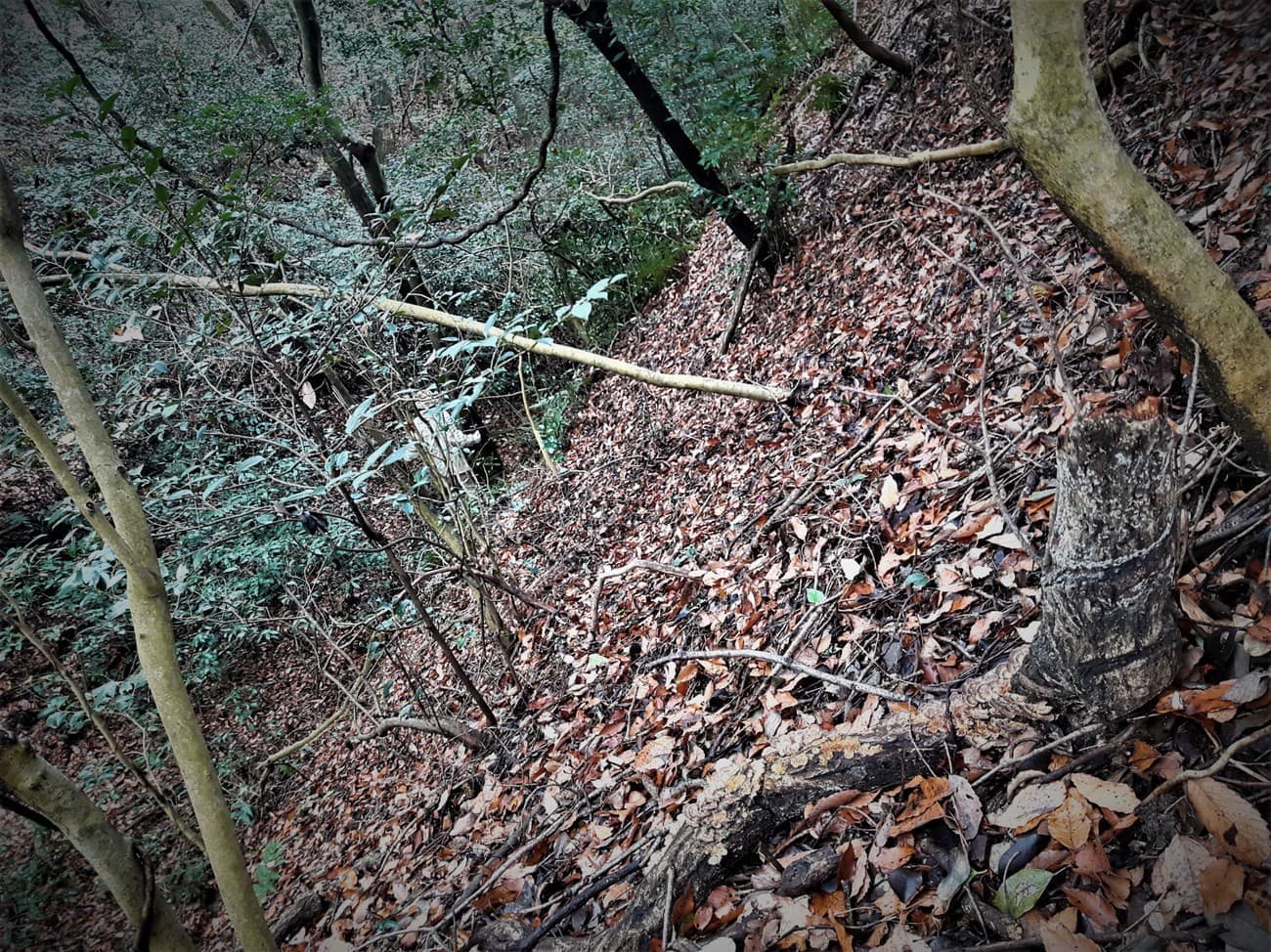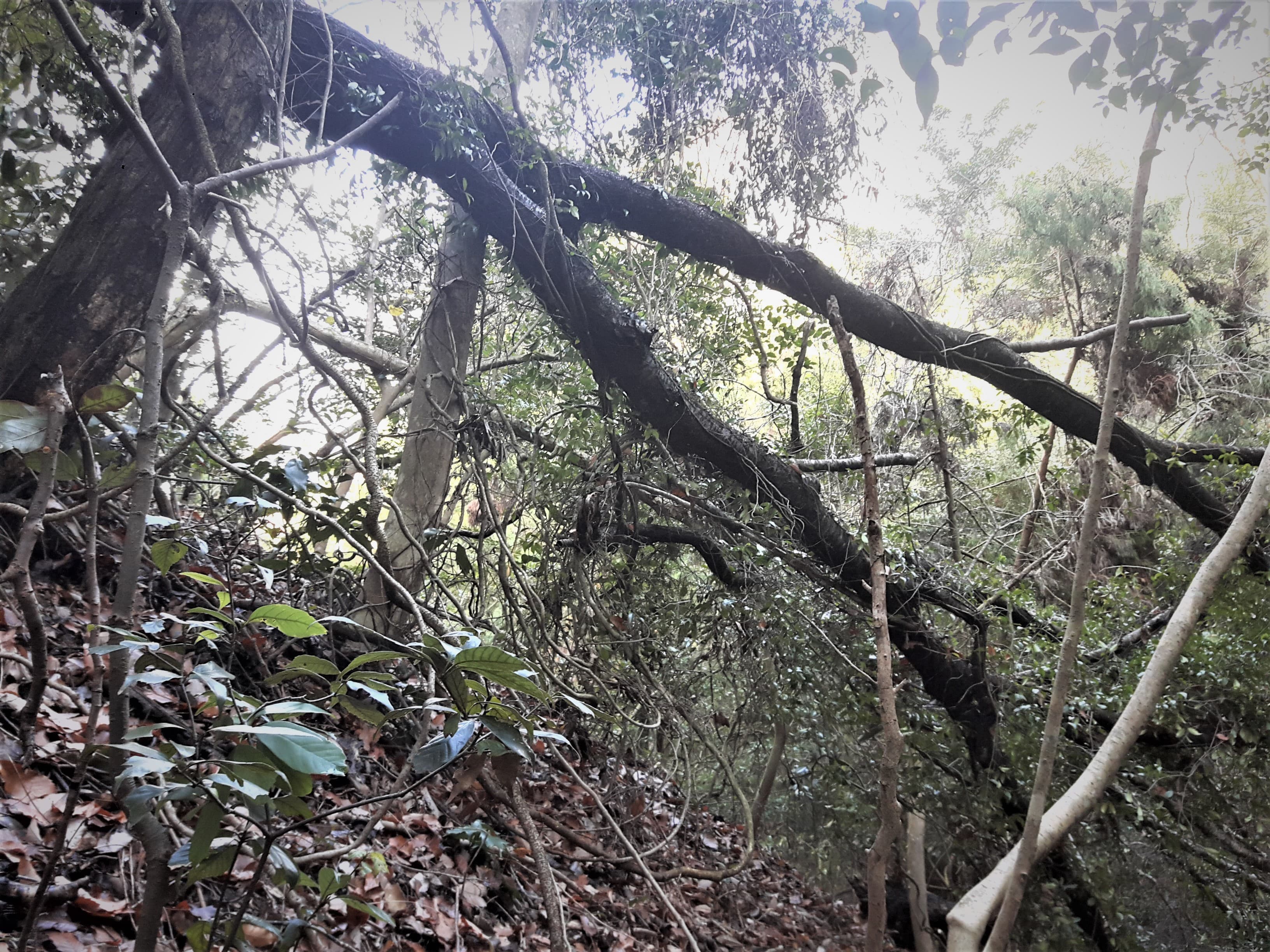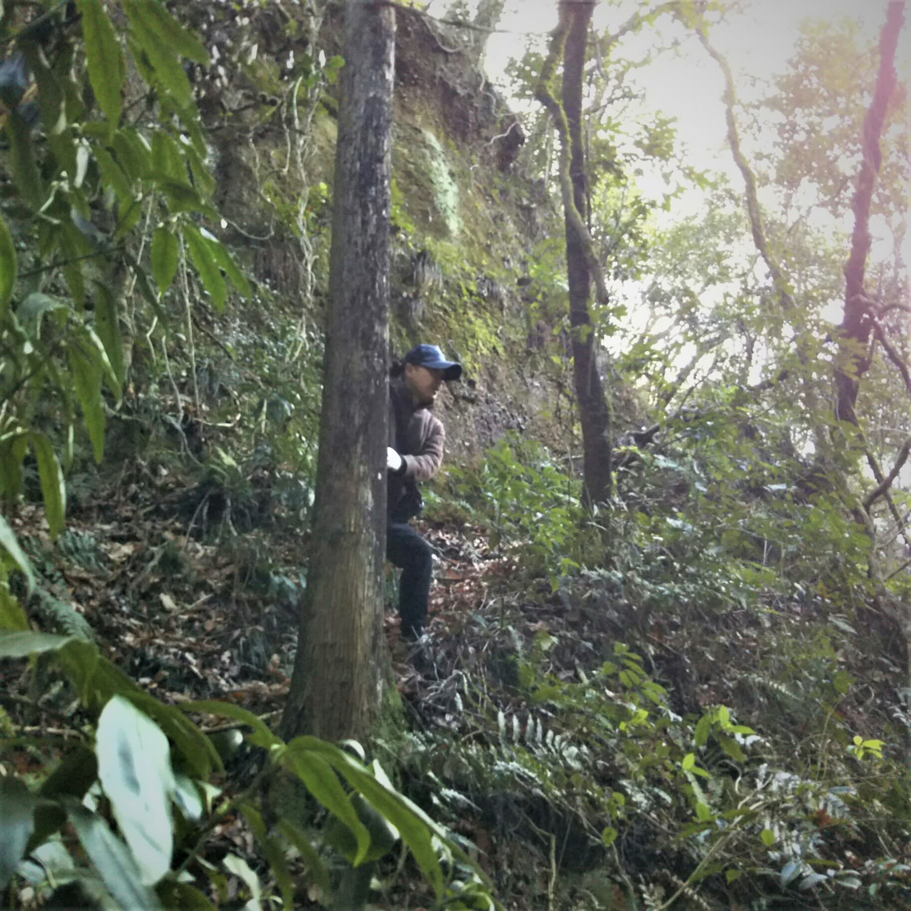 太い枝を必死に掴みながら恐る恐る断崖を進みます。