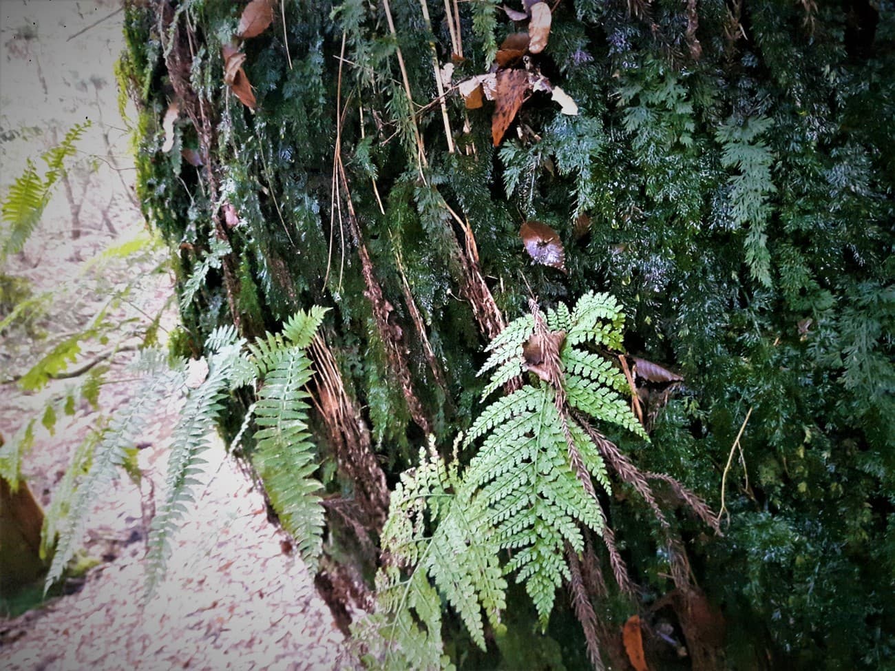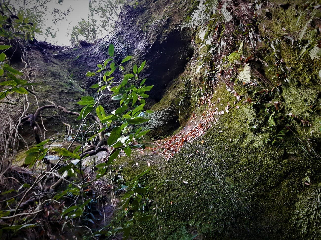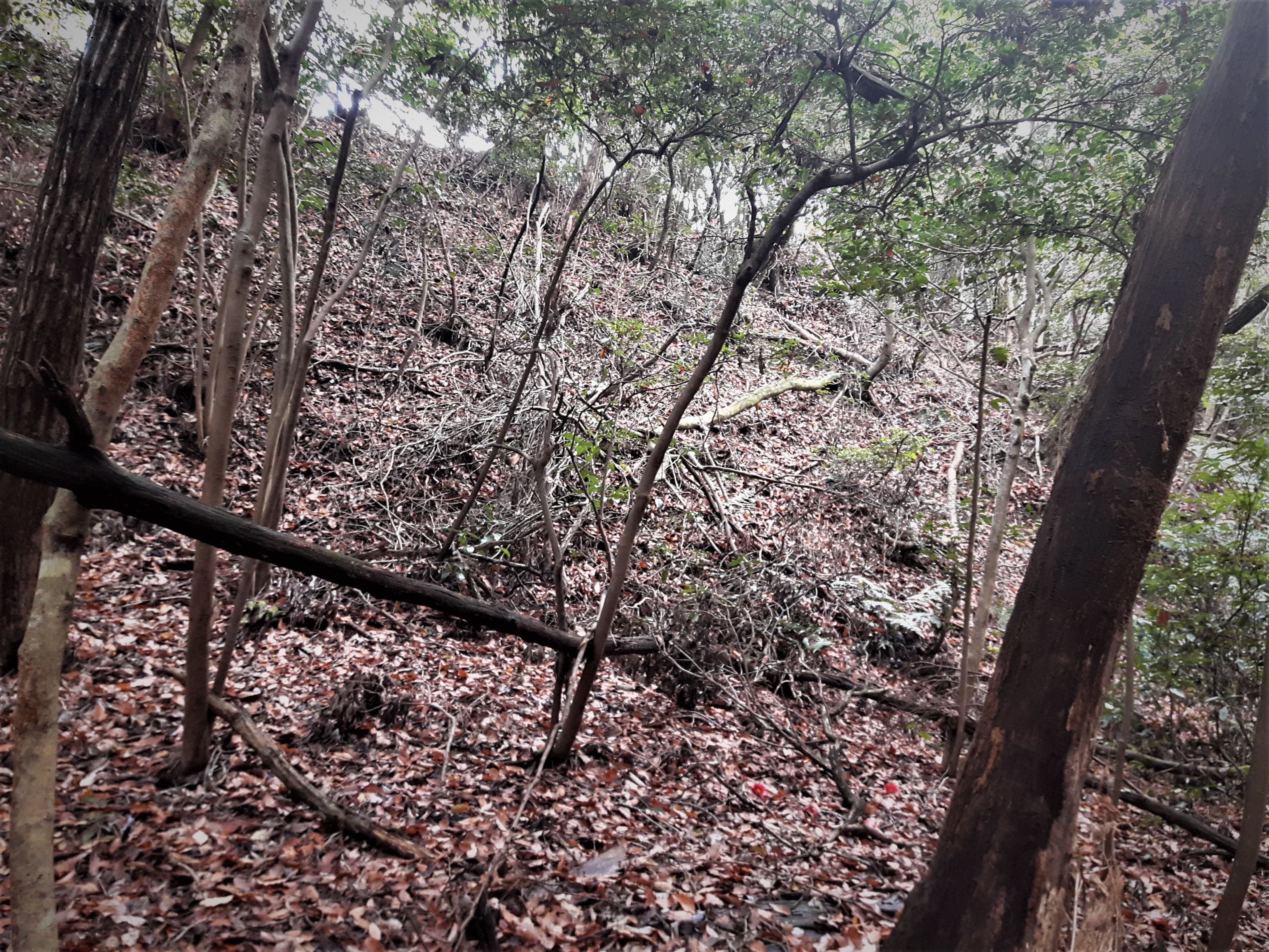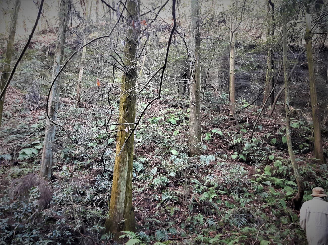 太い枝を必死に掴みながら恐る恐る断崖を進みます。