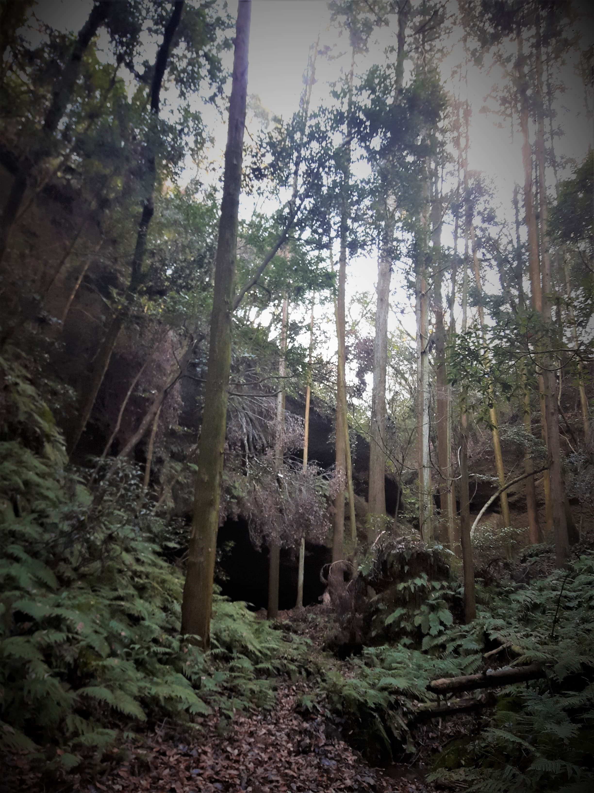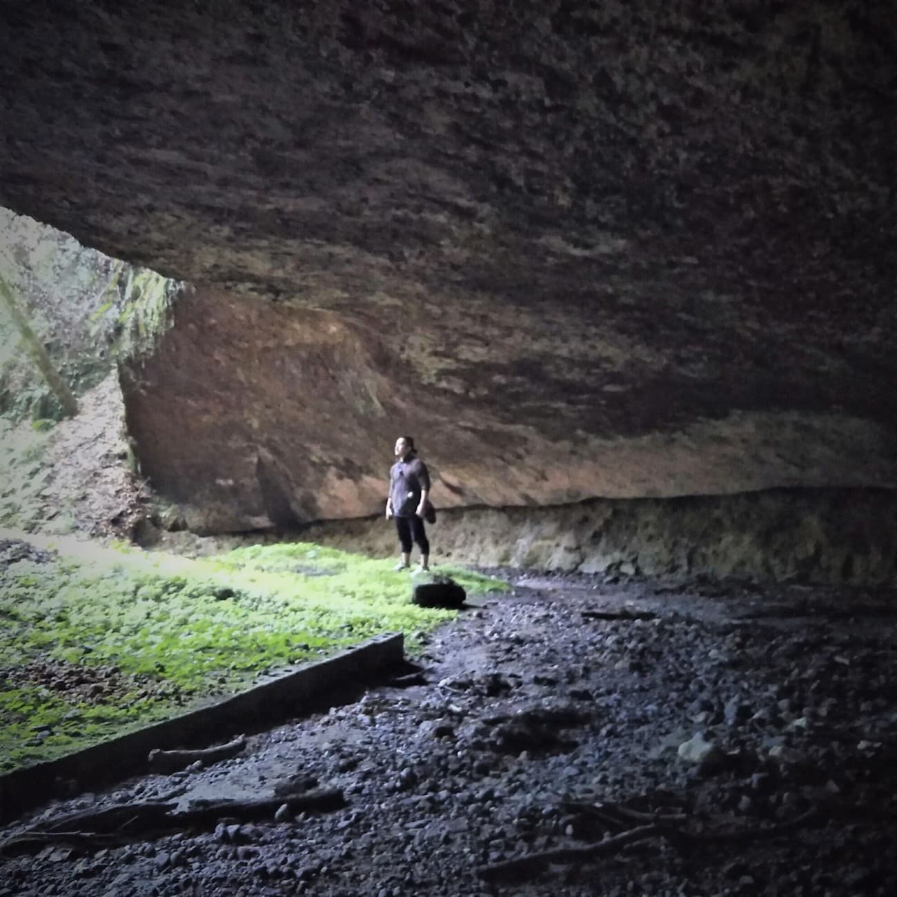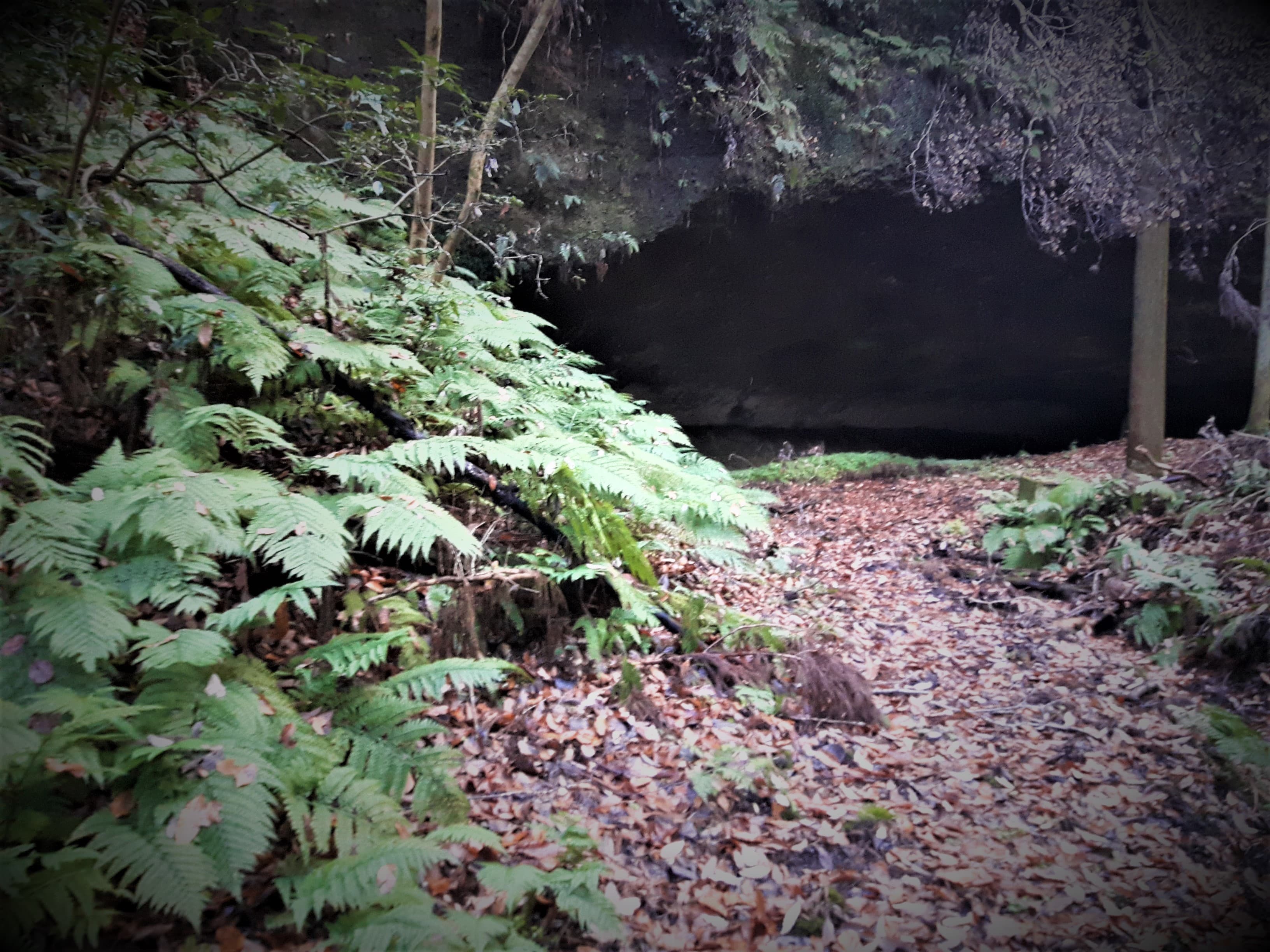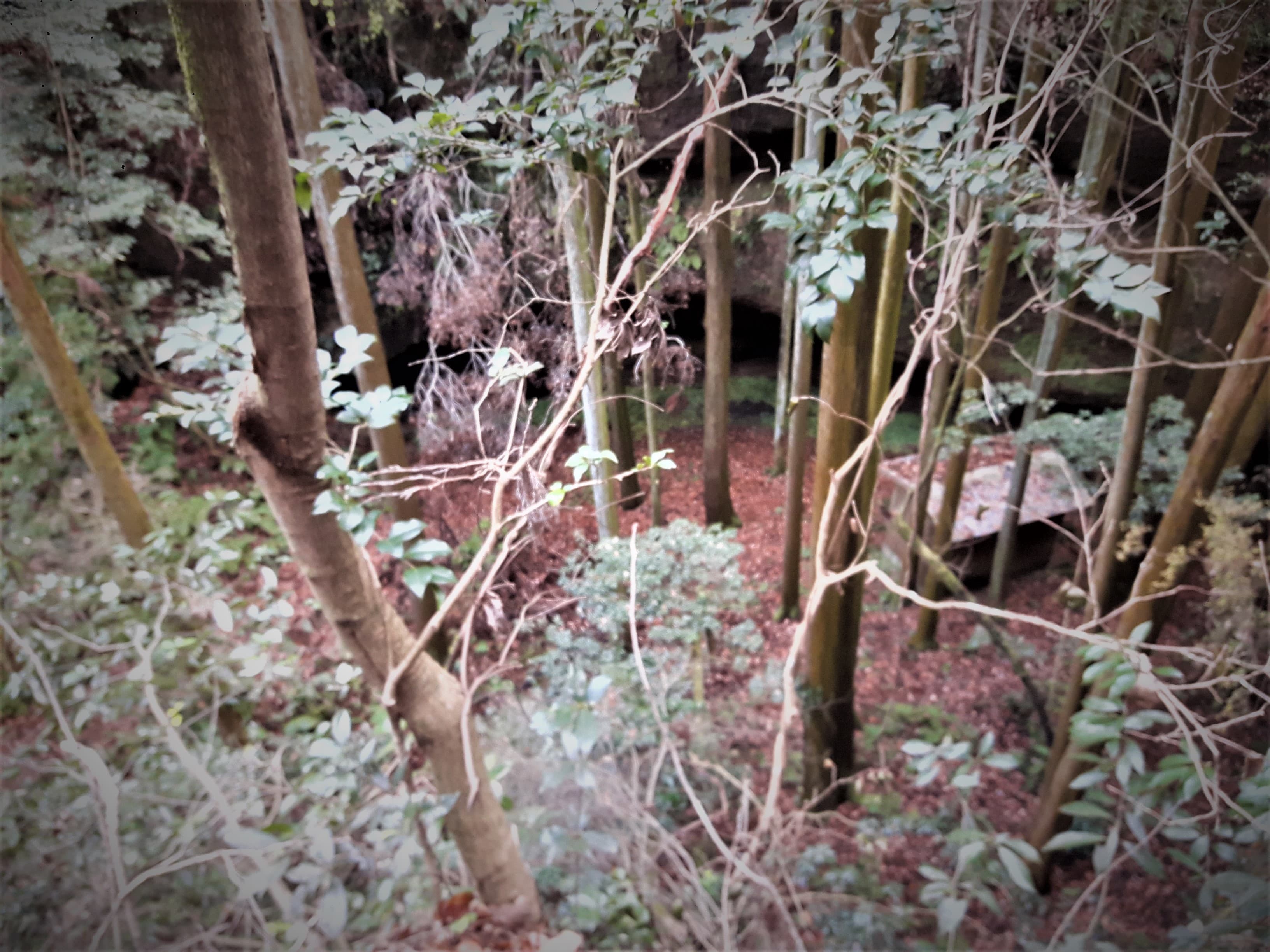 来る途中、眼下に洞窟が見えたため、