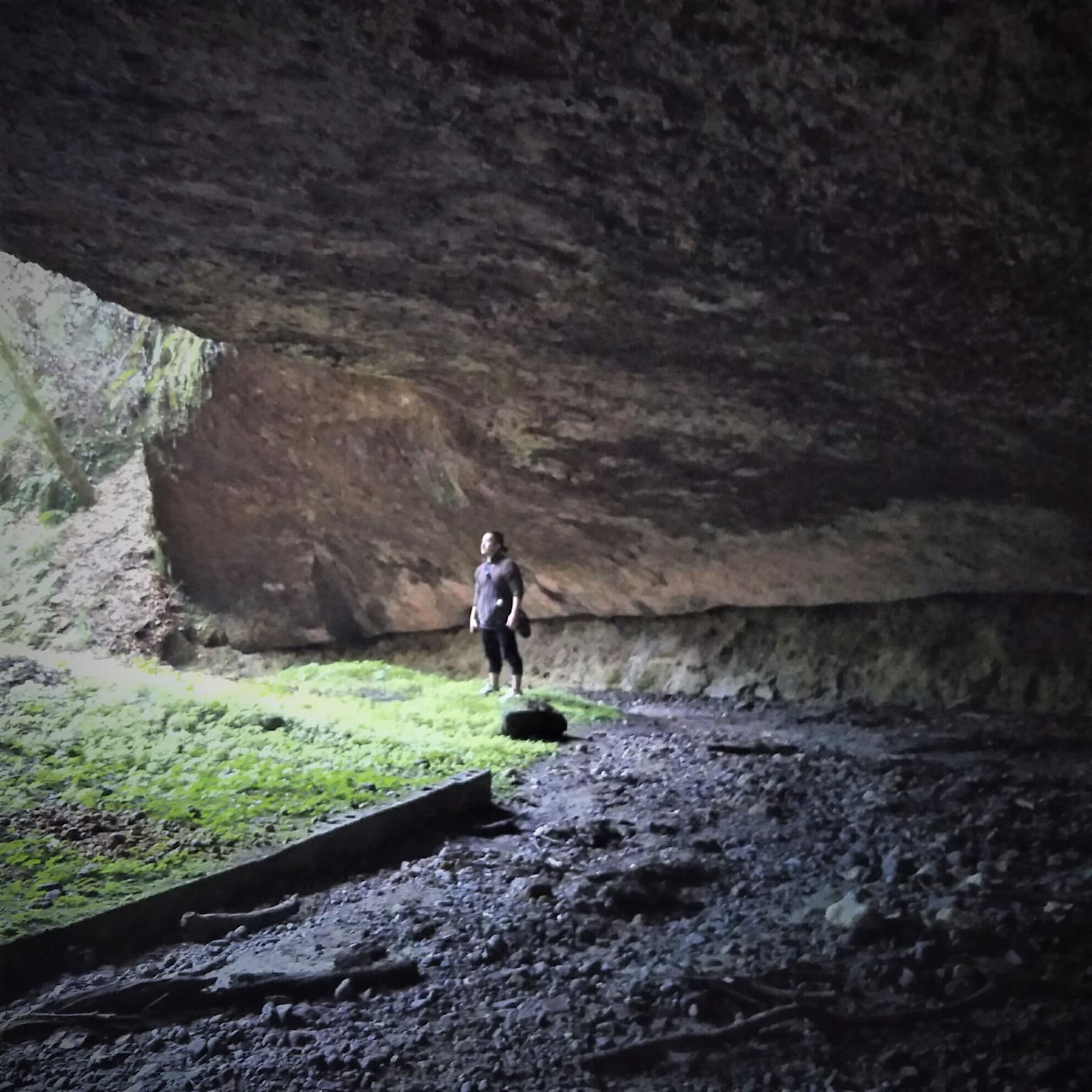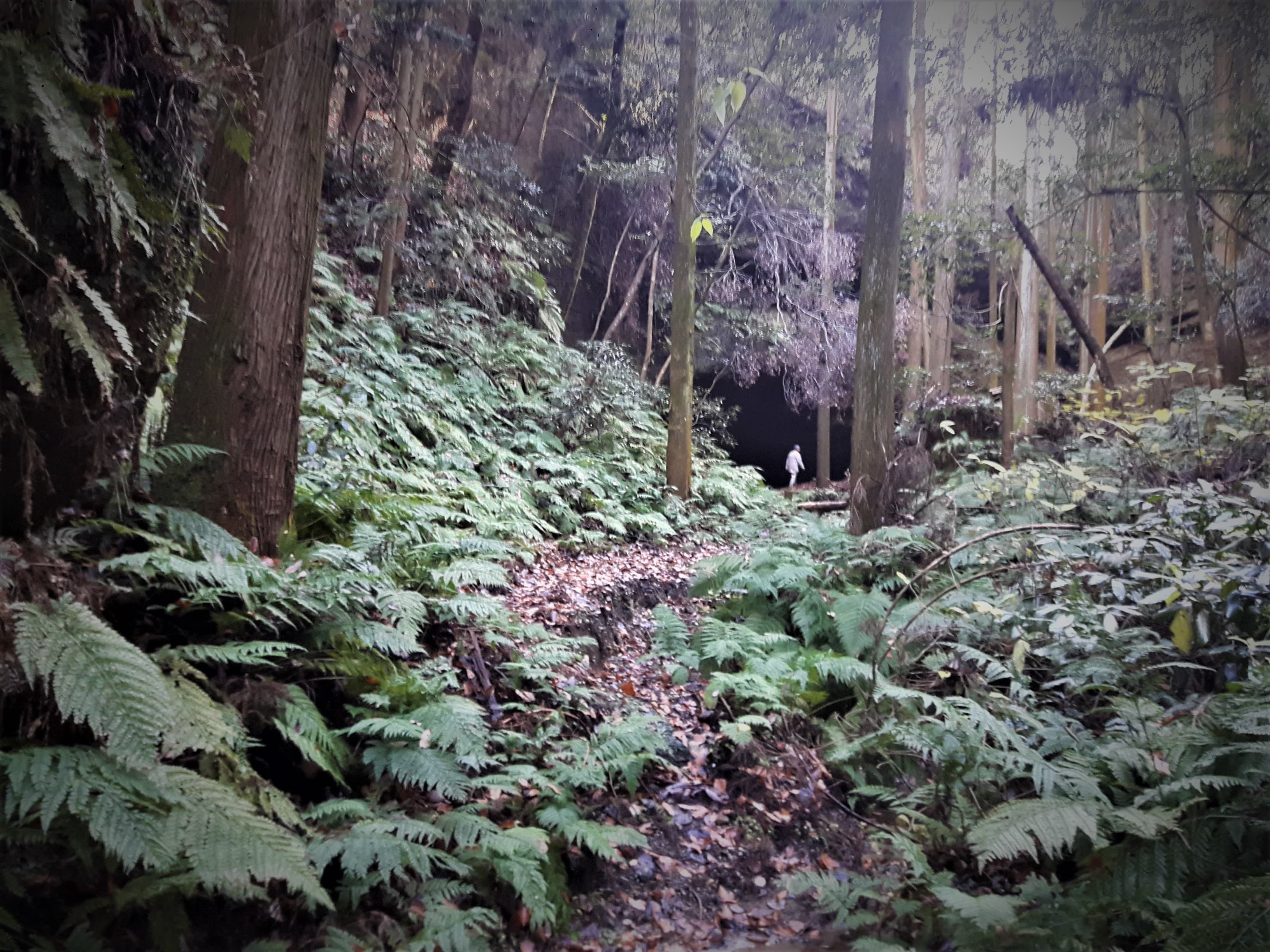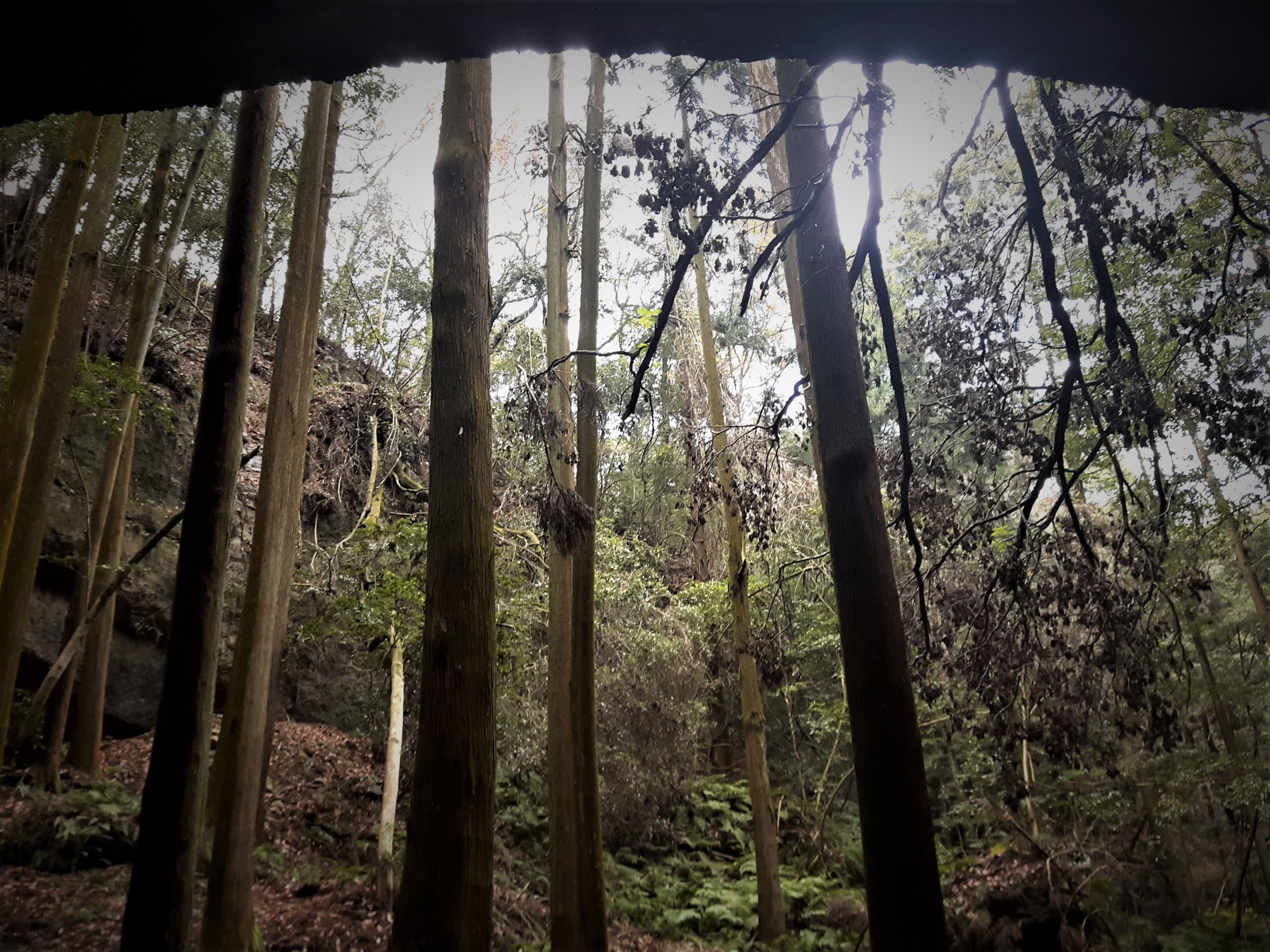 来る途中、眼下に洞窟が見えたため、