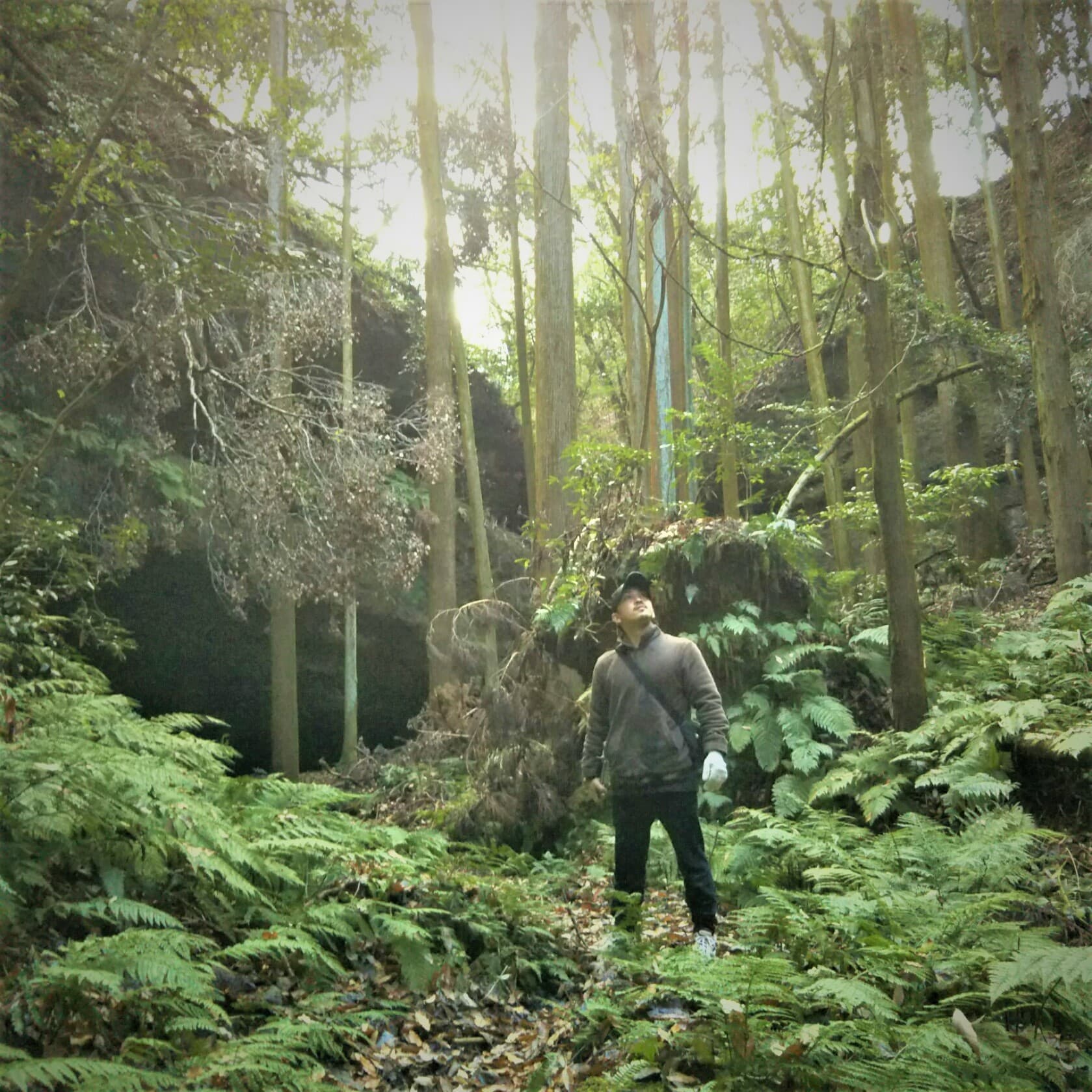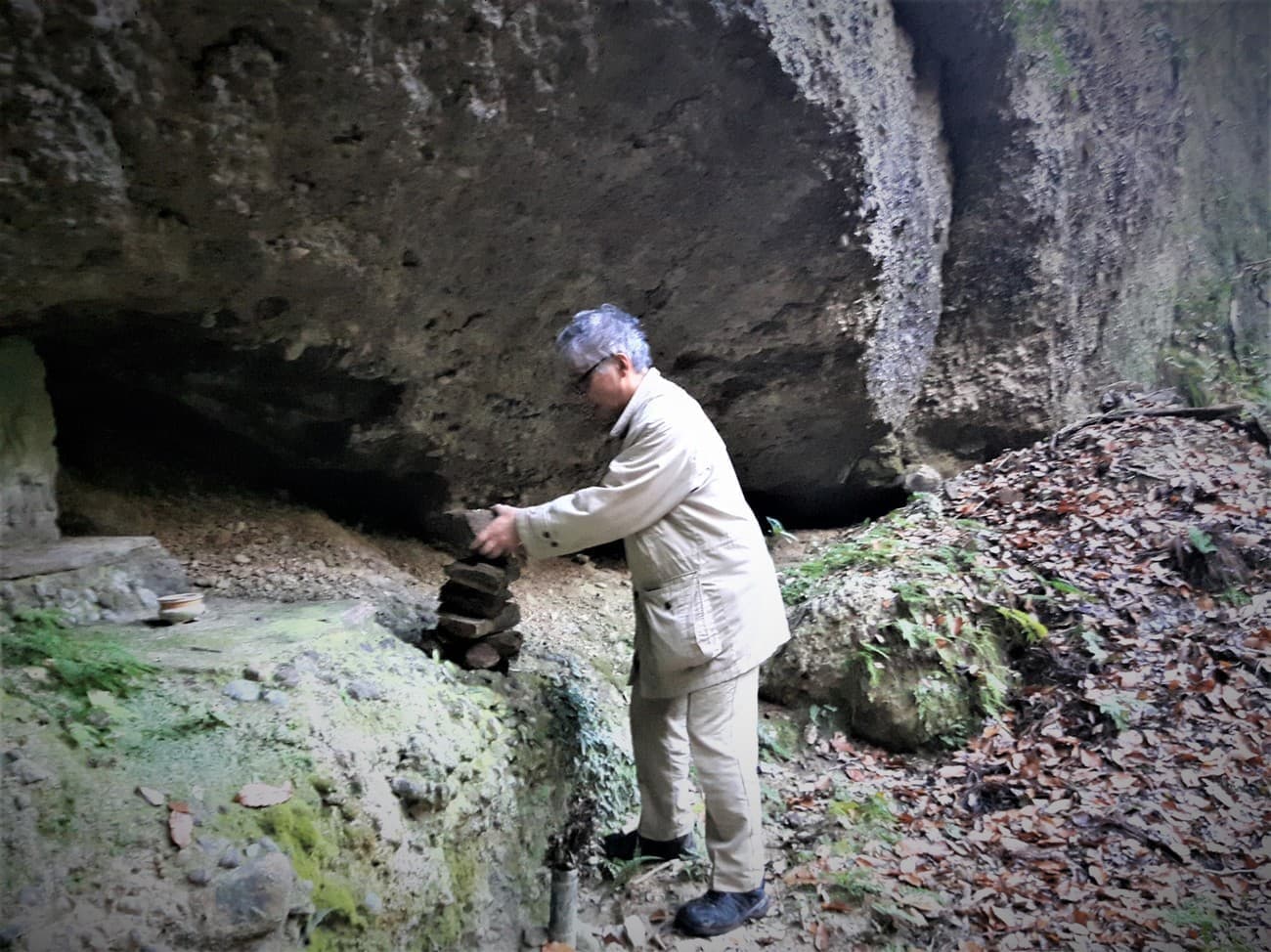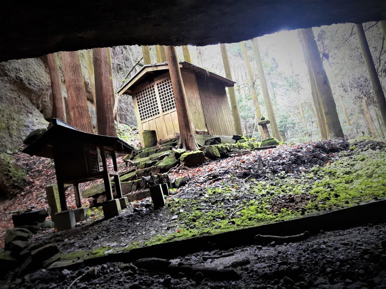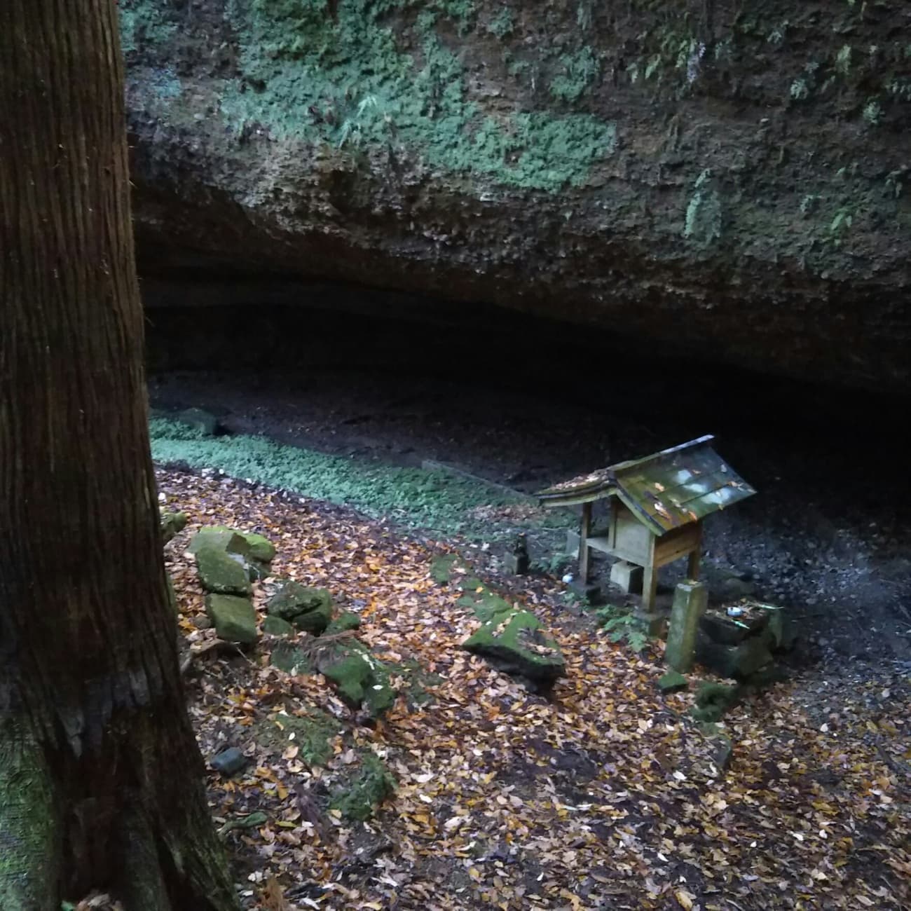 来る途中、眼下に洞窟が見えたため、