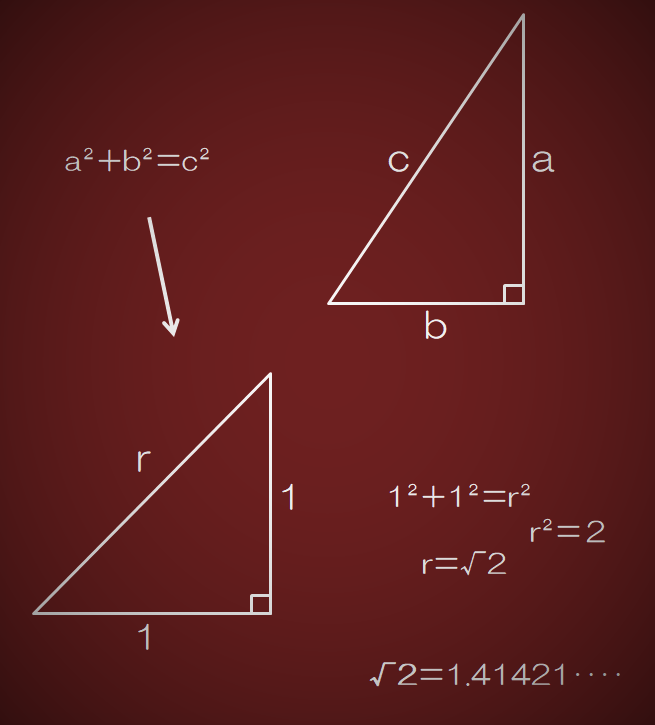 この定理を直角二等辺三角形に応用させたとき