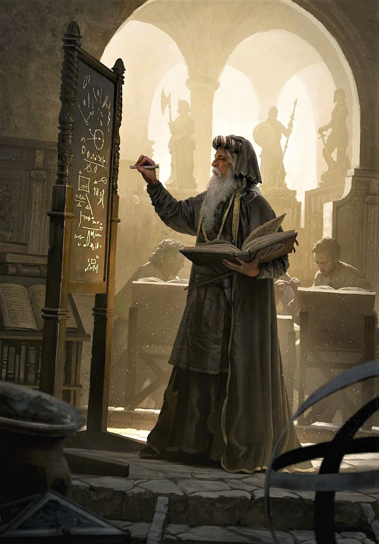 高度な数学、天文学、哲学、思想などを学んだ