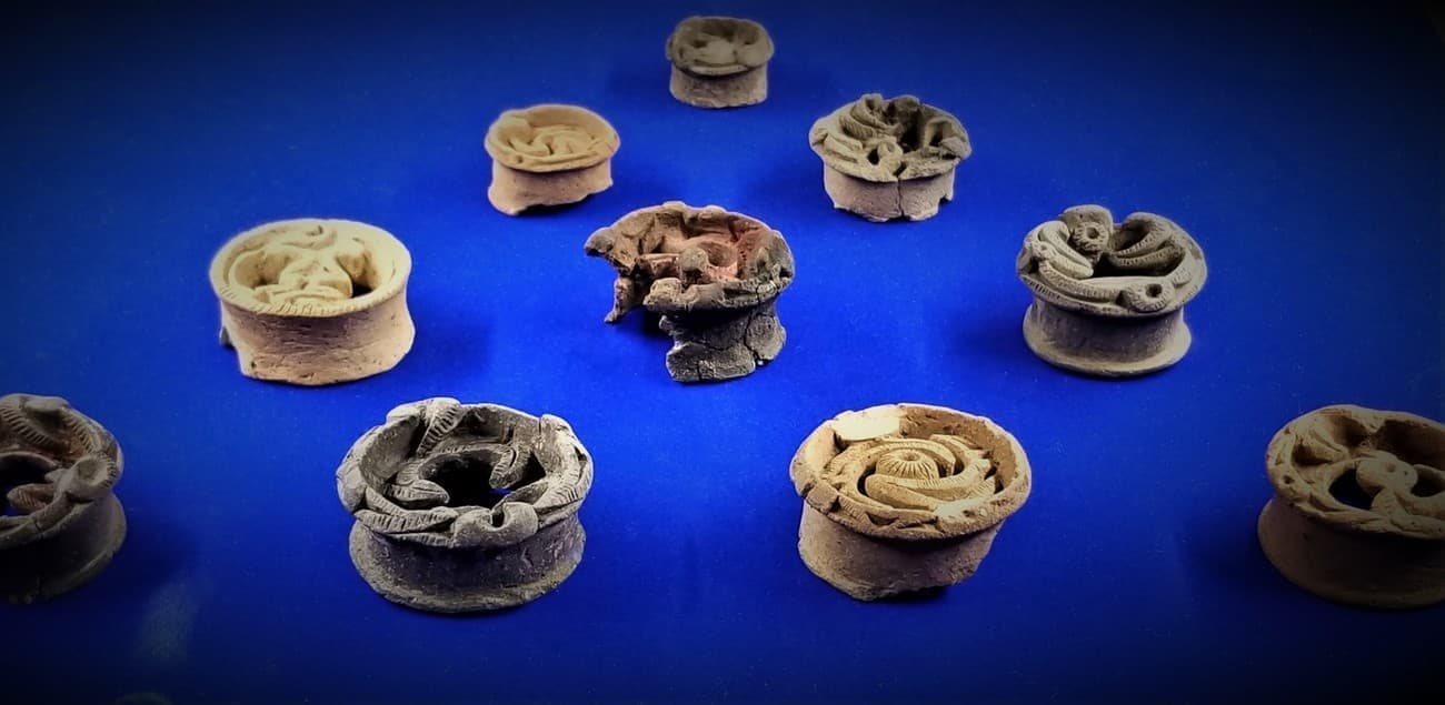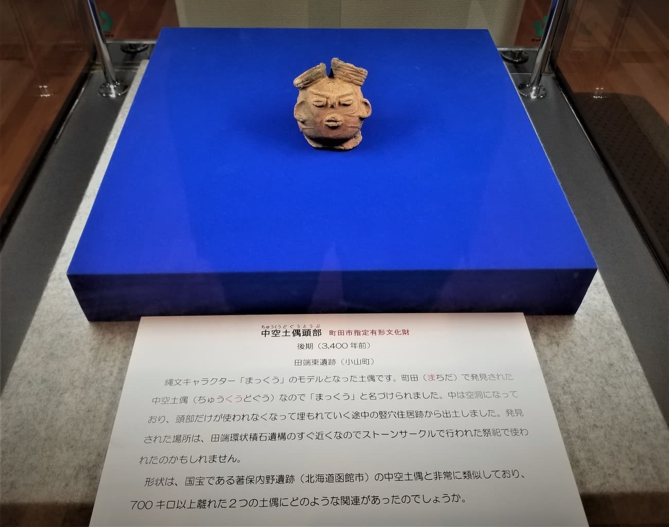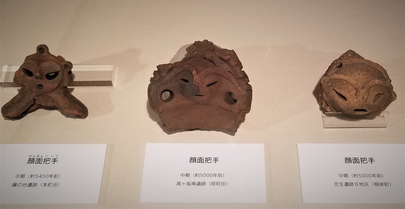 左写真は『透かし彫り土製耳飾り』縄文晩期