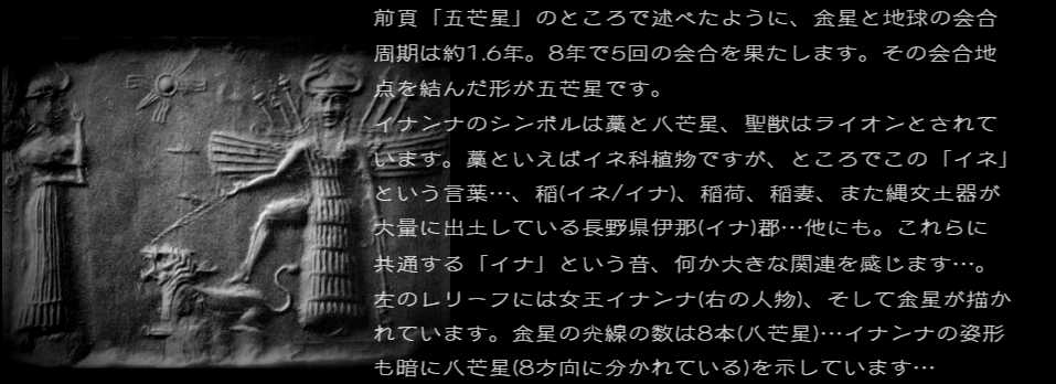 角の生えた動物(ここでは牛)はイナンナの象徴。