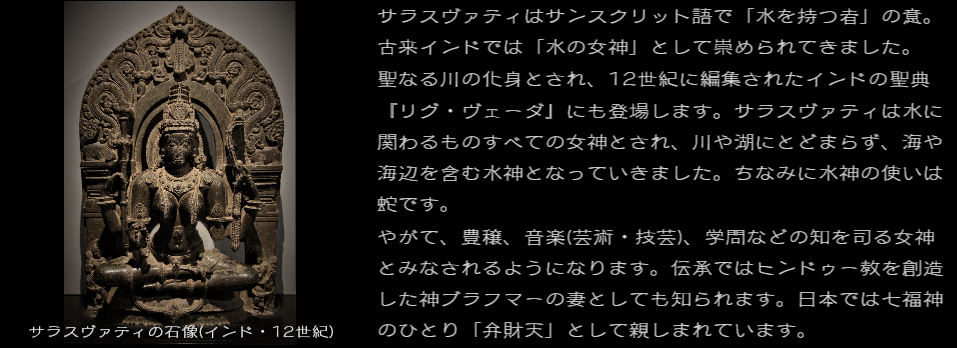 弁才天が琵琶を手にした姿で描かれるのは日本