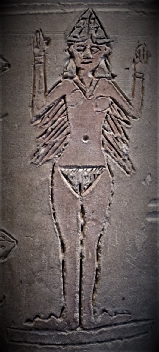 上のレリーフの人物はシュメール神話の女神イナンナと